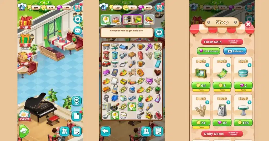 Energy is part of the game, but it doesn’t feel punishing. You can play for a few minutes, take a break, and come back without losing momentum. Ads and in-app purchases exist, sure, but they’re mostly optional; you never feel forced to spend, and that’s a huge plus for anyone who just wants to enjoy the merging and cooking without pressure.