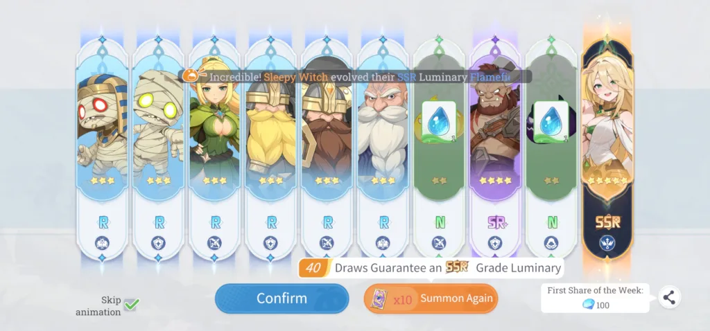 The last category is everything related to character improvement which consists of summoning, leveling, gearing, and whatever helps them to power up. All the resources you gather, you’ll want to spend them on getting stronger. It’s sort of a vicious cycle that never ends. Collect enough materials to get stronger to do one additional stage and then wait till you can get more.