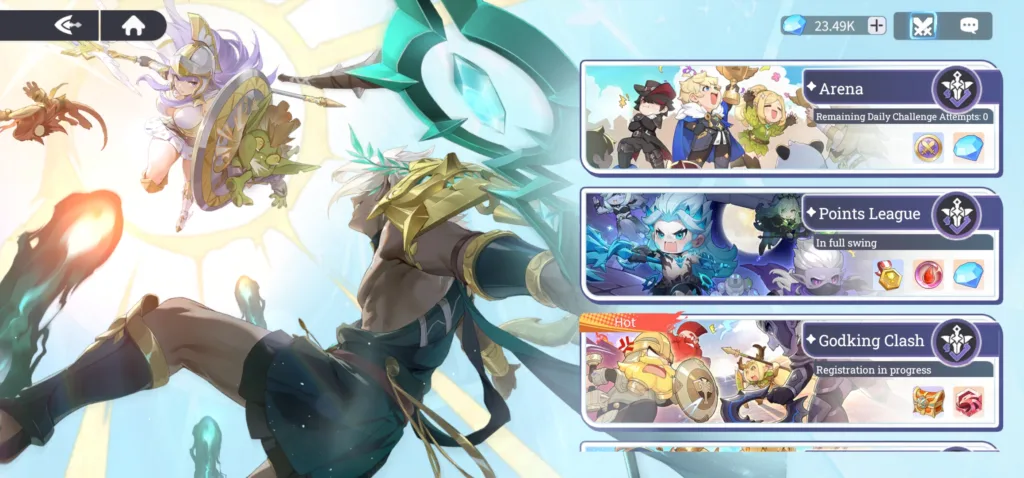 The second category would be everything related to PVE, things like campaign stages, various “towers” to climb, and other contents where you farm materials for upgrading characters/team. Again, the limit of how far you can get depends on how deep your pockets run. For me, I feel like I’ve done well as a F2P player. My overall progress puts me in the top 10%. I know, my life is complete now. Jokes aside, content that is related to PVE consists of a main campaign that you can put on auto, minimize, and collect rewards every few rounds. It’s a great place to collect a lot of crystals and experience for leveling characters. There’s also towers that I’ve mentioned, where you can either get crystals, shards, summoning tickets, and other materials that are related to growing stronger. All of the content can be done on auto with little or no strategizing involved.